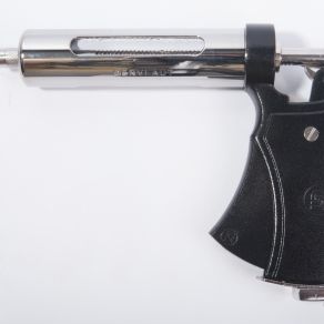 Seringa Dosadora Automática Servi Punho Fechado com capacidade para 50 ML (Em alumínio pintado e Metal Cromado) Acondicionada em Caixa Plástica (Sem Acessórios). Facilitando o manejo na hora das Vacinações, vermifugações evitando que seja misturar Medicamentos, Vacinas, etc.